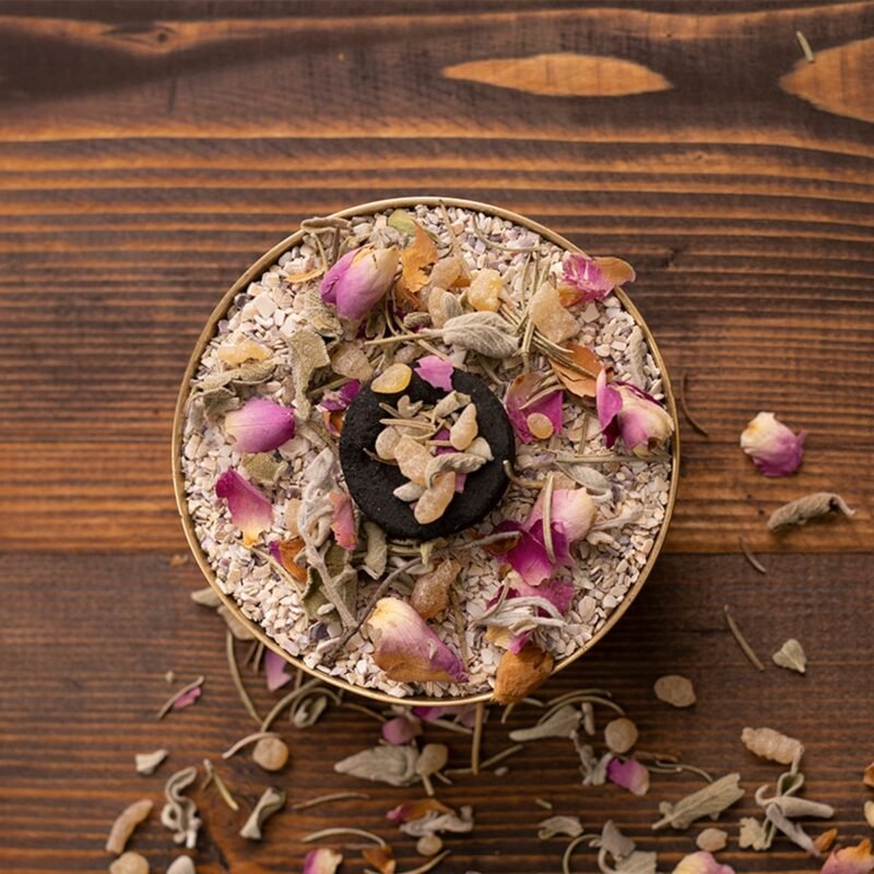 - Step 3: Sprinkle a small amount of Positive Energy Herbal Incense Blend onto the charcoal.